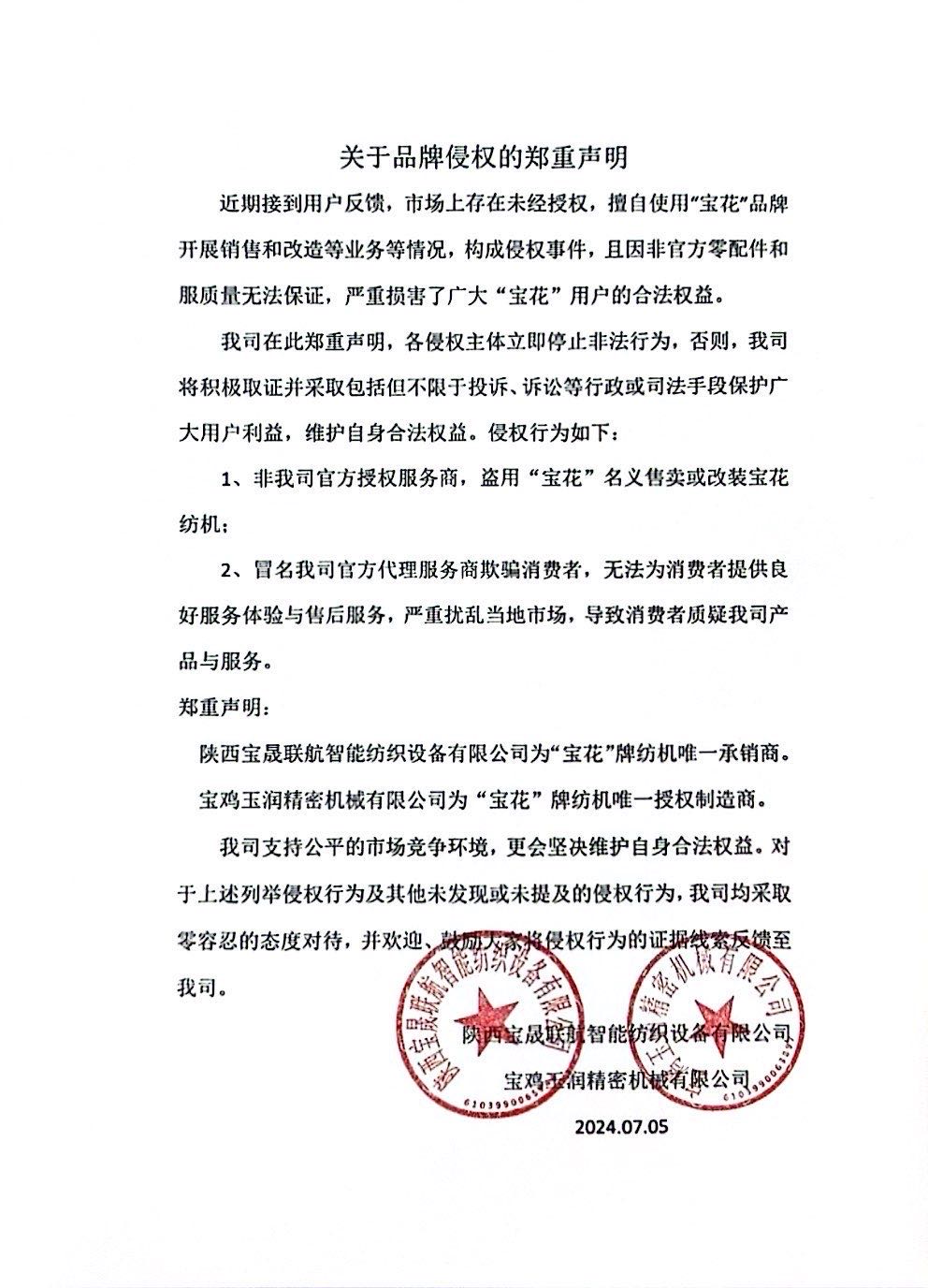 关于品牌侵权的郑重声明